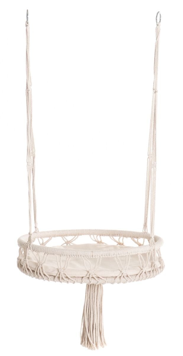 Tyylikäs 4Living makramee lemmikin riipputuoli luo kaunista ja lämmintä tunnelmaa sekä on tarpeeksi hieno myös vaativammallekin lemmikille. Riipputuolilla saat kodikkaan ja tunnelmallisen lepotuolin lemmikille niin terassille, kotiin kuin mökille jossa kissa sekä koira nauttii tuolin pehmeydestä ja mukavuudesta. Pehmeä tyyny takaa mukavan oleskelun ja on irrotettavissa. Enimmäiskantavuus 10 kg. Pakkaus ei sisällä tarvittavia kiinnitystarvikkeita.