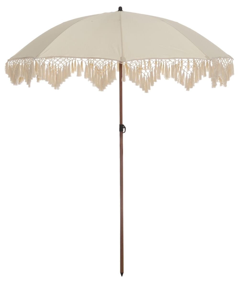 Ihastuttavan Marokko päivänvarjon reunusta kiertää makramee koristehapsut. Varjon metalliosat on käsitelty näyttämään puulta, jolla on saatu varjolle luonnollinen ilme. Varjon asentoa ei pysty säätämään. Alumiinputken vahvuus on 22/25 mm. Varjossa on UV-suoja +50. Varjon halkaisija on 156 cm.