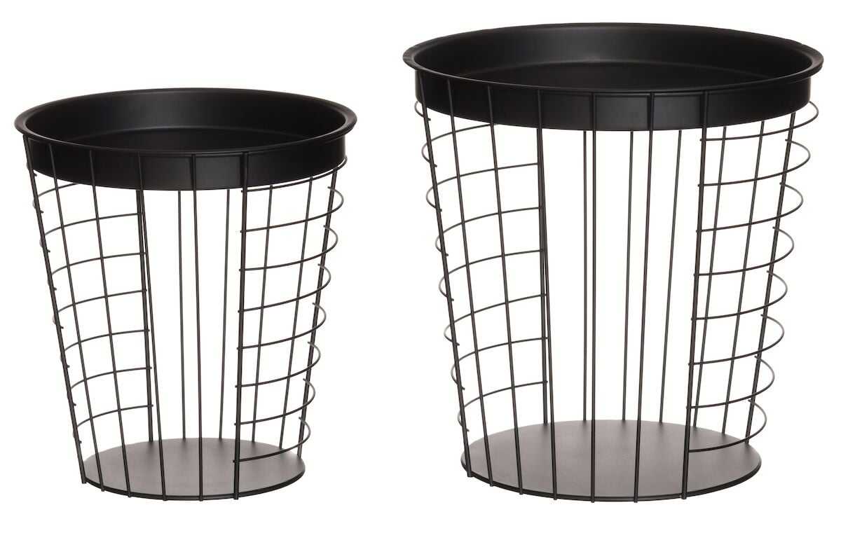 Metalliset 4living metallikori pöytäsetti sisältää kaksi erikoista pöytää. Suuremman pöydän koko 39,5×39,5×40 cm ja pienemmän pöydän koko 33x33x35 cm. Pöydänkannessa syvennys. Pöydänkansi irrotettavissa, jolloin korin sisälle voi säilöä vaikka tyynyjä tai vilttejä.