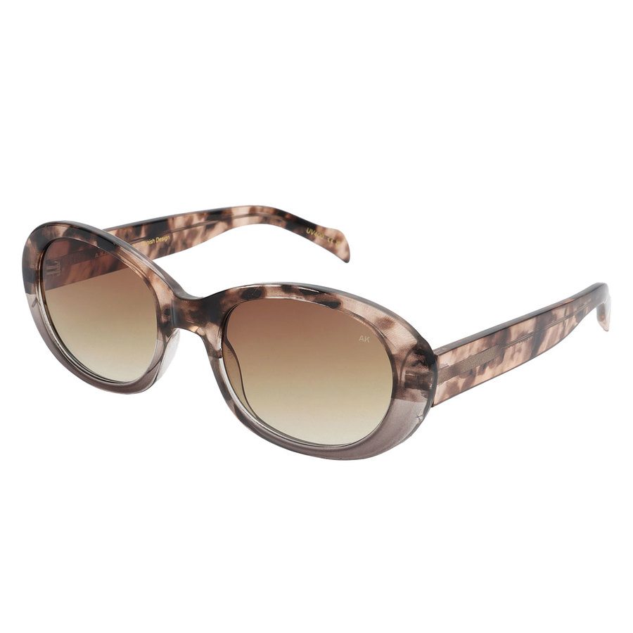 A. Kjærbeden Anma -aurinkolasit ovat uskomattoman elegantit ja tyylikkäät. Keskikokoisissa must-have-aurinkolaseissa on pyöristetyt kehykset, jotka ovat vankat kummaltakin puolelta. Se antaa aurinkolaseille voimakkaan ilmeen.