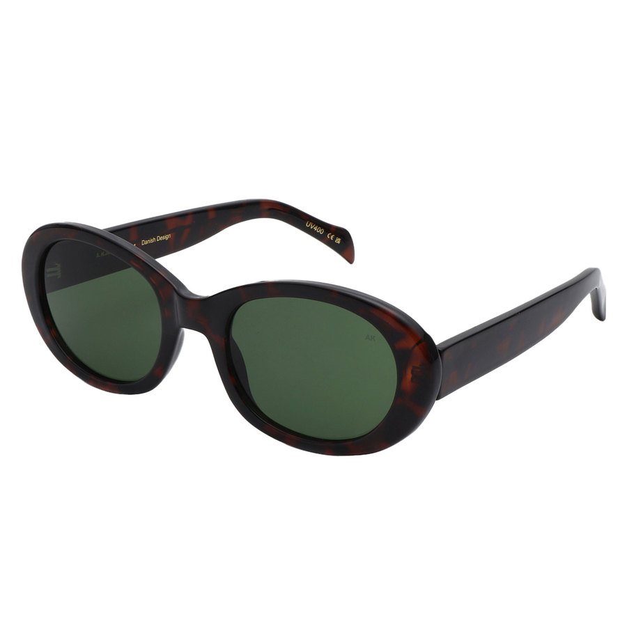 A. Kjærbeden Anma -aurinkolasit ovat uskomattoman elegantit ja tyylikkäät. Keskikokoisissa must-have-aurinkolaseissa on pyöristetyt kehykset, jotka ovat vankat kummaltakin puolelta. Se antaa aurinkolaseille voimakkaan ilmeen.