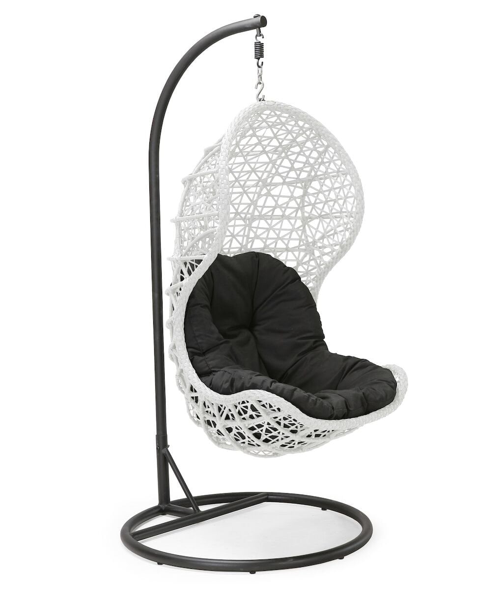 Laadukas ja mukava polyrottinkinen Ägget riippukeinuÄgget on polyrottinkinen, näyttävä ja mukava riippukeinu. Keinu on oiva kesäpäivien löhöilyyn tai rentoutumishetkiin kirjan parissa. Värivaihtoehtoina musta ja valkoinen. Muhkeat pehmusteet. Riippukeinu on todella laadukas ja tukeva.Mitat:Jalustan halkaisija 100 cmKorkeus 200 cmTekniset tiedot:Materiaali polyrottinkiaVäreinä musta ja valkoinenSisältää telineenTodella tukevaMaksimi istumispaino 100 kgToimitus:Toimitetaan jalkaosa osina paketissaKeinuosa toimitetaan käyttövalmiina