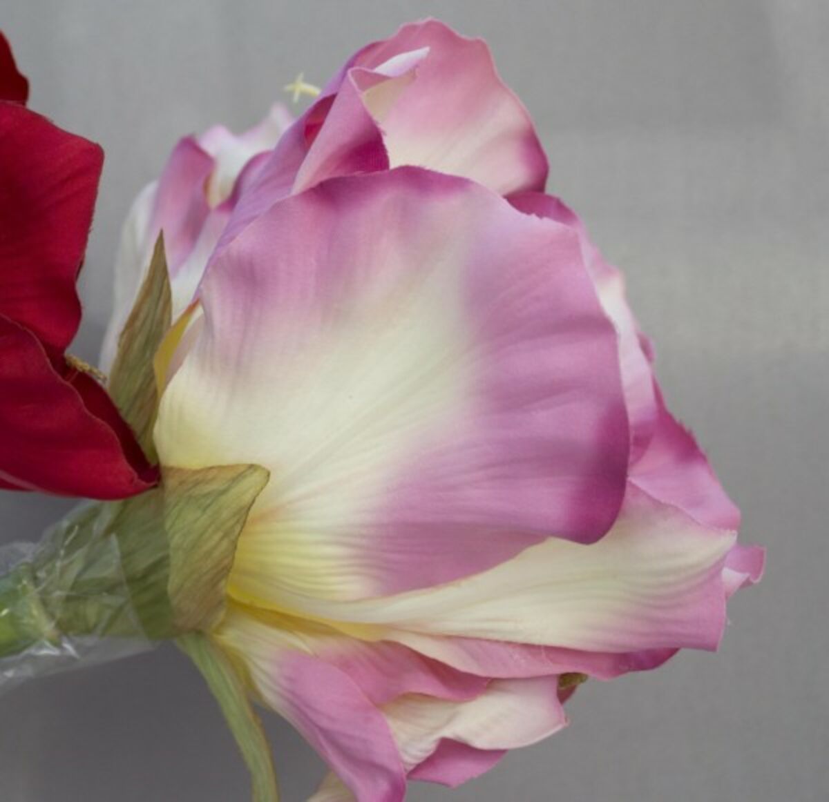 Ihastuttava joulukukka Amaryllis. Kauniin silkkikukan kokonaiskorkeus on 70cm. Amaryllis sopii hyvin leikkona asetuksiin tai maljakkoon sekä jouluaiheisiin istutuksiin. Ihastuttavat värit.