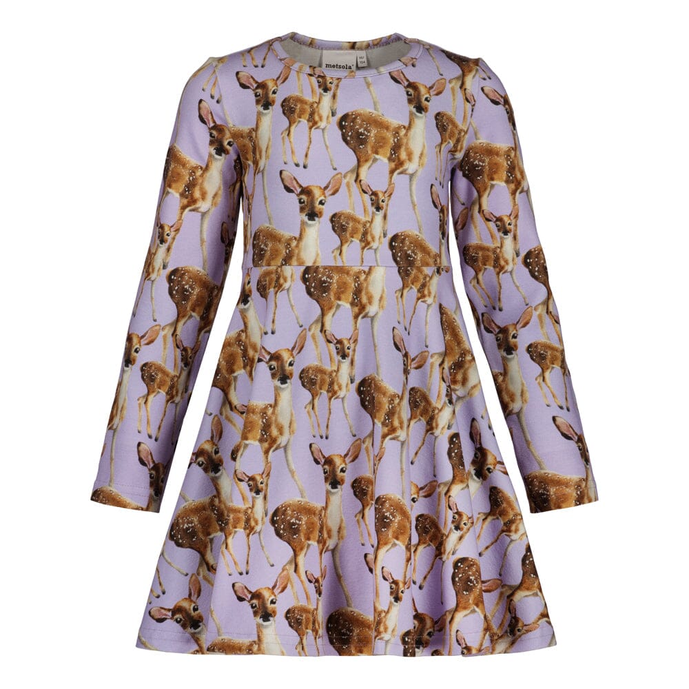 Bambi Lilac -lasten mekko on valmistettu pehmoisesta luomupuuvillasta. Mekko on materiaaliltaan kestävää, joustavaa ja miellyttävän tuntuista trikoota. Tässä lasten pitkähihaisessa mekossa on vyötäröllä sauma ja kauniisti laskeutuva helma.