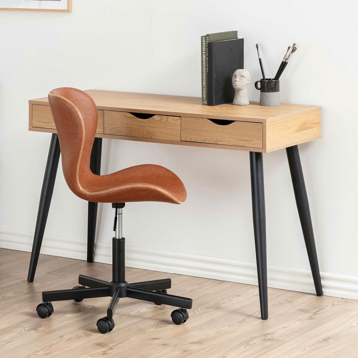 Moderni ja erittäin tyylikäs Batilda työtuoli sopii niin kotitoimistoon kuin koululaisen huoneeseen. Tuolissa on tukeva, ergonominen ja miellyttävä muotoilu. PU-nahkaverhoilun viimeistelee tyylikäs siksak-ommel, joka kiertää tuolin reunoja. Tuolin istuinkorkeutta voi kaasujousella säätää 44,5 – 51,5 cm välillä. Tuolissa on pulverimaalattu metallijalka sekä lukittavat renkaat.
