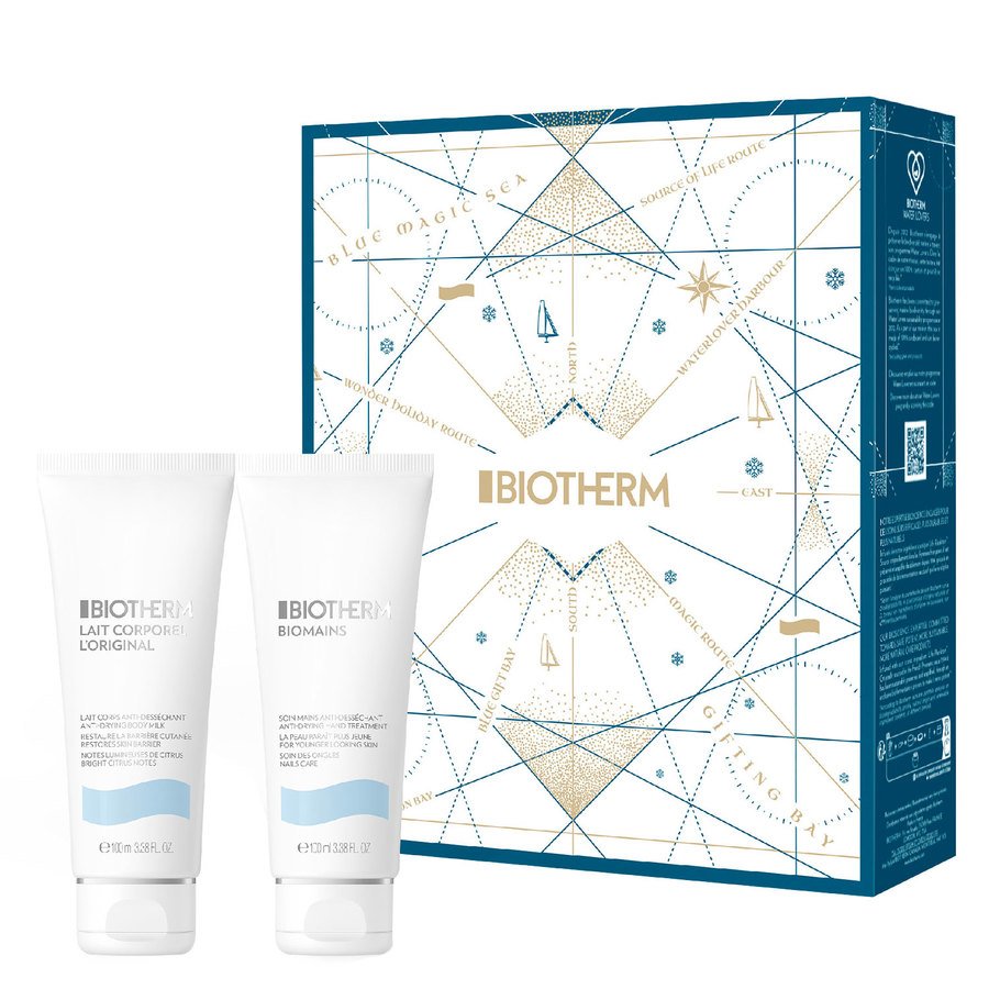 Biothermin Biomains Holiday Set 2024 sisältää käsivoiteen ja vartaloemulsion käsien ja vartalon ihon intensiiviseen kosteutukseen. Täydellinen antamaan pehmeä ja kimmoisa iho.