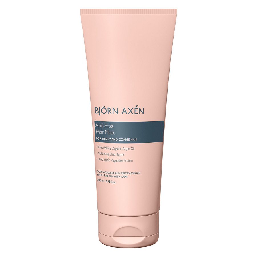 Björn Axénin Anti-Frizz Hair Mask on syvävaikutteinen hiusnaamio, joka hoitaa pörröisiä ja karheita hiuksia tehden niistä pehmeät, sileät ja erittäin kiiltävät.