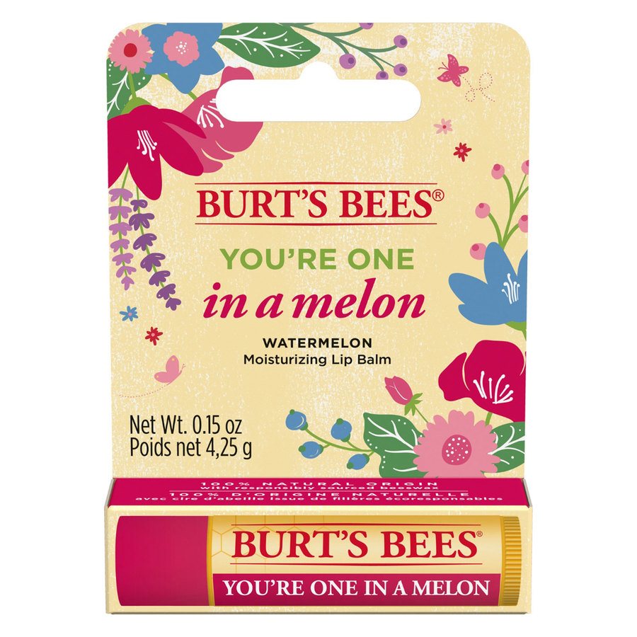 Burt”s Beesin You’re One In A Melon Lip Balm on täysin luonnollinen huulivoide, joka sisältää ravitsevaa ja hoitavaa mehiläisvahaa, karitevoita ja E-vitamiinia. Saatavana rajoitettu erä.