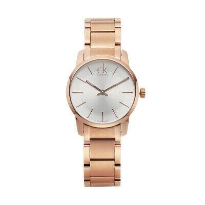 Naisten Calvin Klein -rannekello – mallinumero K2G23646- Teräsranneke, punakullan sävyinen PVD- mineraalilasi- kellotaulun halkaisija: 31 mm- kellotaulun väri: hopea- rungon väri: punakulta- vesitiiviys 30 m- takuu 2 vuotta- valmistettu Sveitsissä