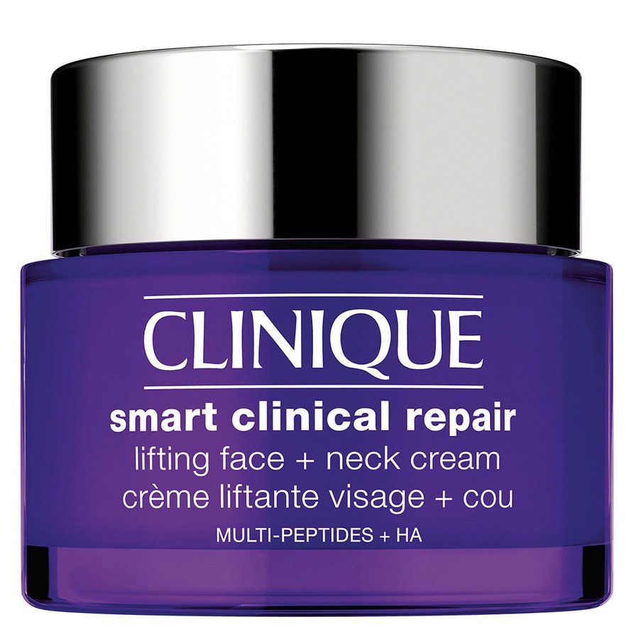 Cliniquen Smart Clinical Repair Lifting Face + Neck Cream on tehokas voide kasvojen ja kaulan iholle. Voide kohottaa ihoa huomattavasti ja ehkäisee juonteita ja ryppyjä. Saat sileämmän ja nuorekkaan näköisen ihon.