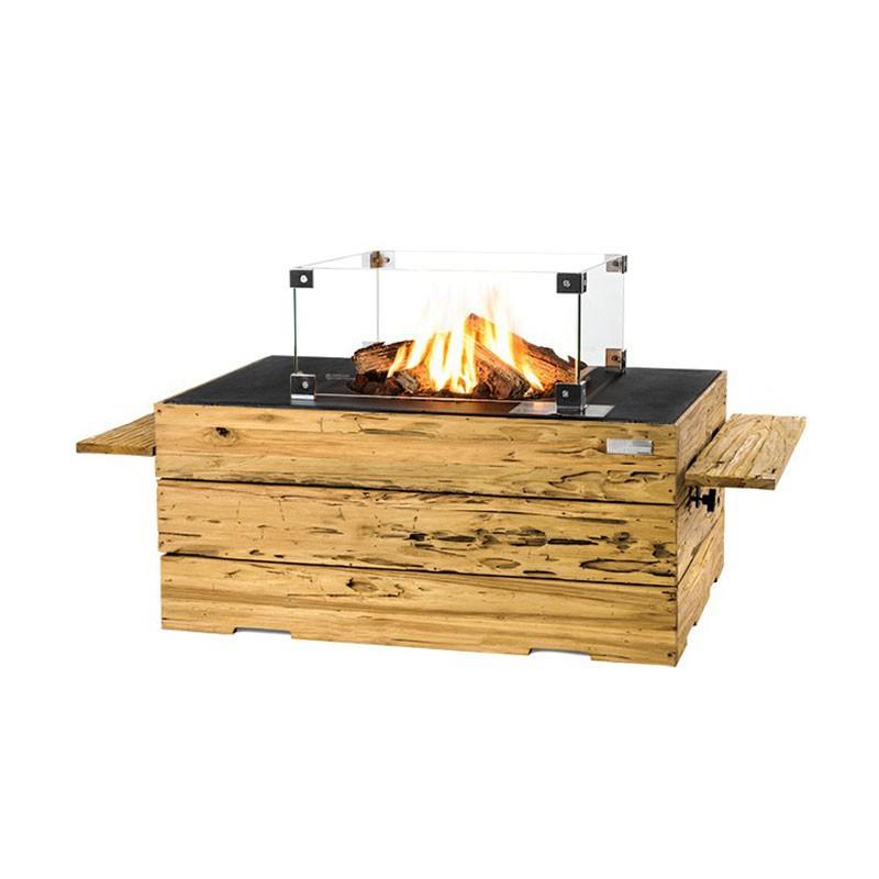 Suorakaiteen muotoisessa musta kantisessa tulisijassa on reippaasti pöytätilaa. Valmistettu kierrätetystä tiikistä. Liekkien kokoa voidaan helposti säätää.