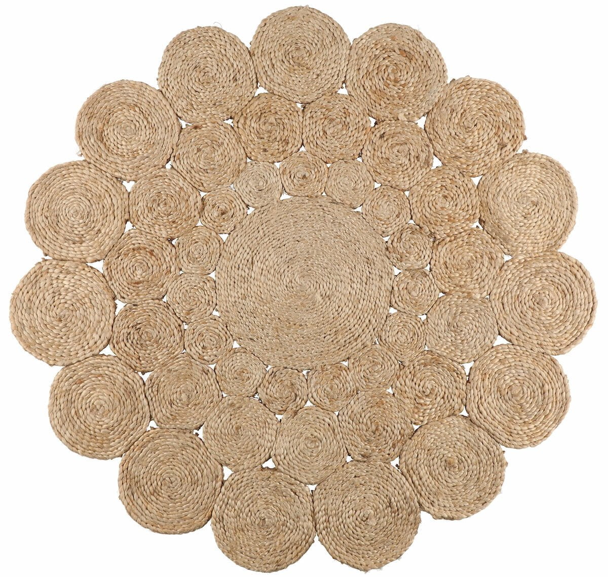 Fanni K Pyörre pyöreä juuttimatto on letitetty paksu matto. Matto on letitetty käsin juutista, josta on taidokkaasti tehty pyöreitä kuvioita. Matto tuntuu jalan alla miellyttävältä. Reunoissa on ihan uudenlainen pyöreä hauska tyyli. Juutti on ympäristöystävällinen ja kestävä valinta, se hajoaa biologisesti ja uusiutuu. Juuttimatot soveltuvat niin sisä- kuin katettuihin ulkotiloihin, kuten parvekkeelle ja terassille.