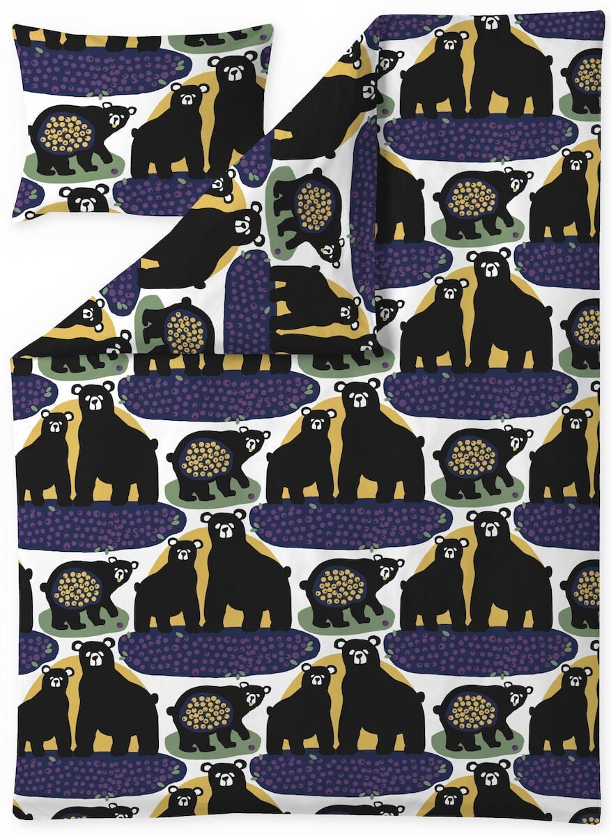 Finlayson Otso pussilakanasetti on Finlaysonin laadukas ja kestävä yhden hengen setti. Kuosissa on syksyinen satumetsä, jossa karhut ovat marjastamassa. Kuosi on suosittu ja rakastettu Sami Vullinin suunnittelema. Kuosi tarjoaa tarinan, joka viihdyttää lapsia ja tuo aikuisille nukkumaanmennessä tietynlaisen turvallisen tutun tunteen. Setti on valmistettu puuvillapalttinasta, jonka kankaantiheys on 152. Materiaali on helppohoitoinen, joka tuntuu miellyttävältä iholla ja kestää hyvin kulutusta ja korkeita pesulämpötiloja. Puuvillapalttina on suosittu, turvallinen ja varma valinta vuodevaatteisiin. Pussilakanasetin yläosassa on aukot helpottamaan täkin pukemista. Koko setti on valmistettu luomupuuvillasta, joka on GOTS ja ÖKÖ TEX -sertifioitu. Tämä kertoo siitä, ettei haitallisia kemikaaleja ole käytetty ja tuotantoketju on jäljitettävissä, nämä molemmat ovat Finlaysonille kunnia-asia. Yöt saa nukkua rauhassa Finlaysonin seteillä, koska niillä on viiden vuoden takuu.