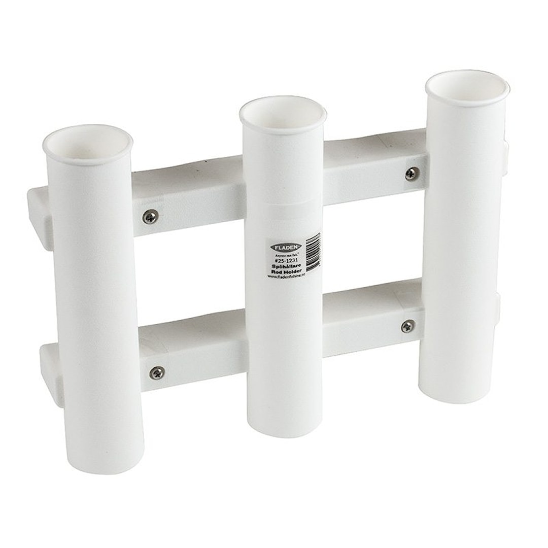 Vapauta tilaa veneestäsi kätevän Fladen vapatelineen avulla. Samalla suojaat vapojasi kolhuilta ja saat vavat helposti telineestä käyttöösi.Muovinen, kolmen vavan vapateline. Mitat: 22 x 5 x 30cm.