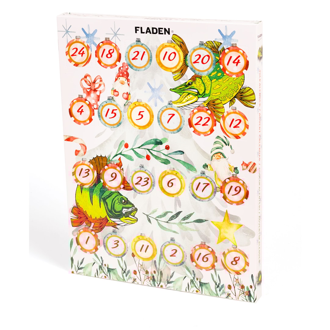 Fladenin Kalastajan joulukalenteri sisältää 24kpl kalastusvälineitä, esimerkiksi spinnereitä, lusikkavieheitä, pehmovieheitä, koukkuja, perukkeita, vaappuja yms. Jokaisen kalastajan pakkohankinta joulunodotukseen!