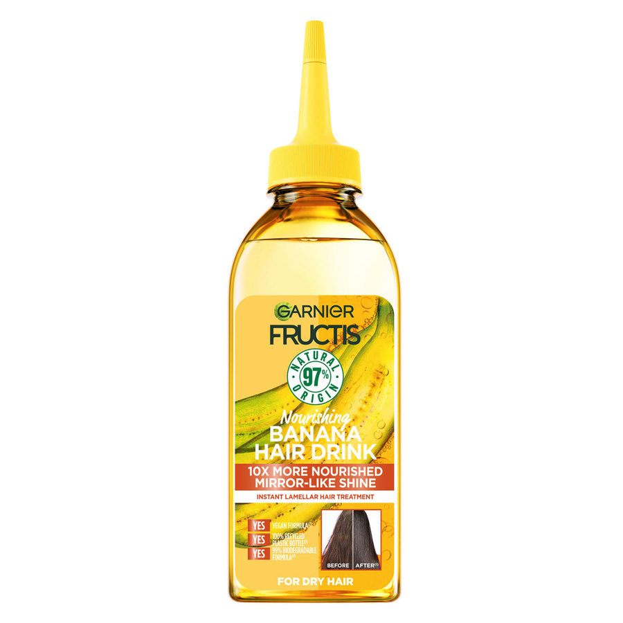 Garnierin Fructis Hair Drink Banana Lamellar Treatment on 10 sekunnissa vaikuttava käsittely pitkille, elottomilta näyttäville hiuksille.
