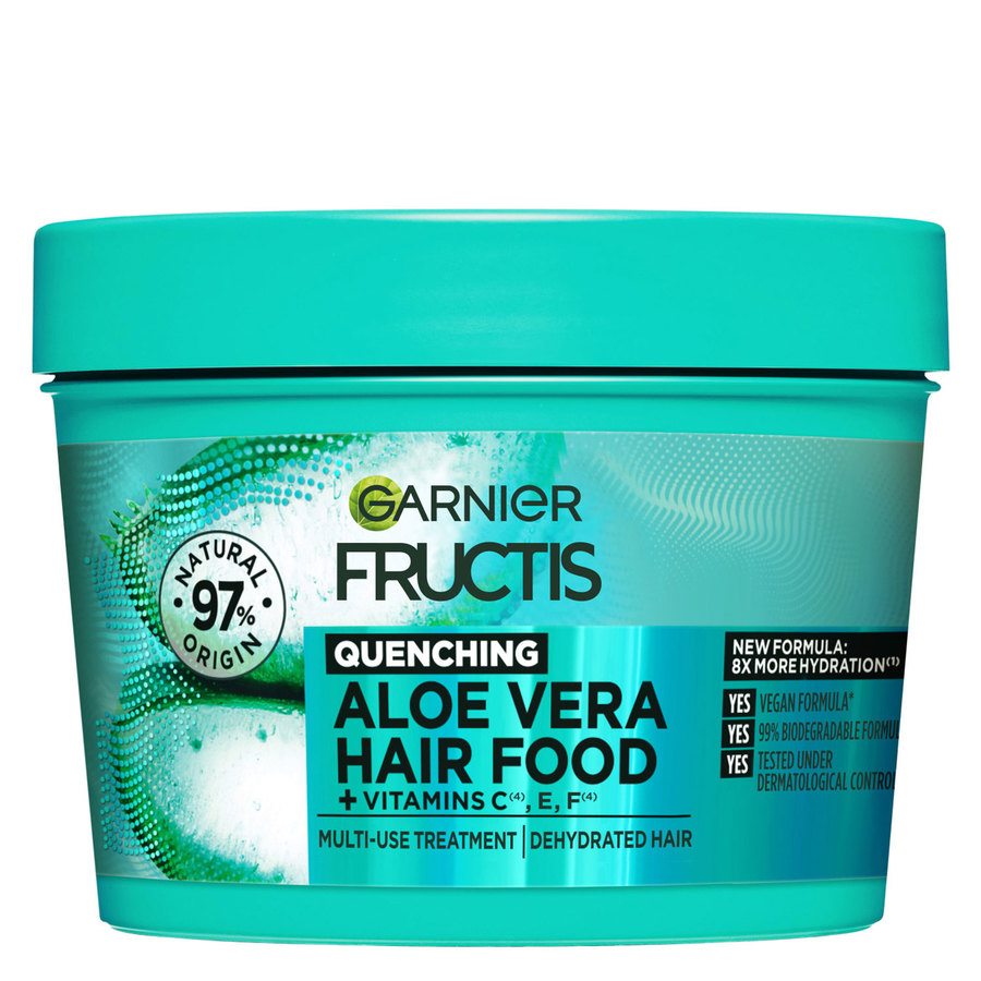Garnierin Fructis Hair Food Aloe Vera Mask on hiusnaamio normaaleille hiuksille. Se kosteuttaa ja ravitsee kuivia hiuksia ja tekee niistä helpommin kammattavat.