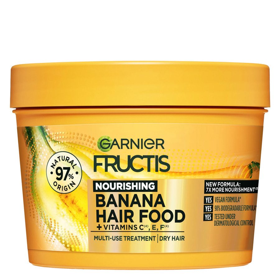 Garnierin Fructis Hair Food Banana Mask on hiusnaamio kuiville hiuksille. Se ravitsee tehokkaasti, pehmentää ja tekee hiuksista helposti kammattavat.