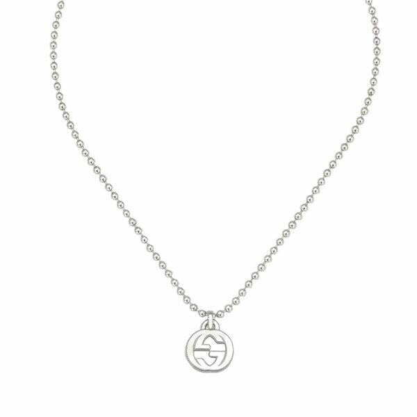 Hopeinen Gucci Interlocking G -kaulakoru Gucci Interlocking G -kaulakorussa on klassinen GG-riipus. Kaulakoru on hopeaa ja ketjun pituus on säädettävissä, 40-45 cm. Italialainen Gucci valmistaa maailmanlaajuisesti tunnettujen vaatteiden ohella myös ylellisiä koruja ja kelloja. Guccin kelloissa ja koruissa yhdistyy ajattomuus, laatu ja omaleimainen tyyli. Tuotenumero: 086YBB47921900100UKorun materiaali: hopeaKetjun pituus: 40-45 cm (säädettävä Katso kaikki Gucci-kellot ja -korut täältä