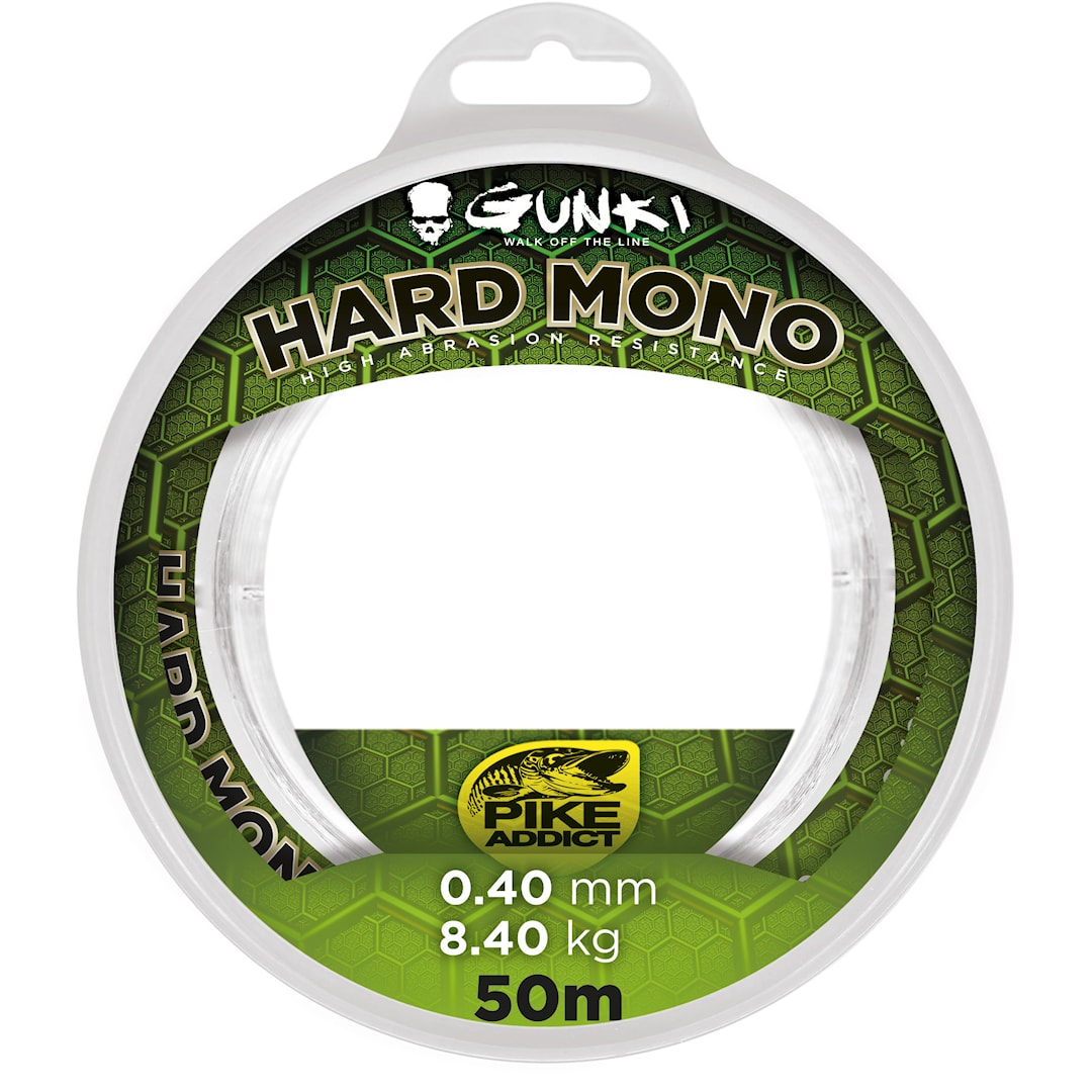 Gunki Hard Mono perukemateriaali kestää erinomaisesti hankausta ja viiltoja! Erinomainen perukesiima niin hauen-, kuhan- ja ahvenenkalastajille, kuin vaikkapa jäämerelläkin kalastaville. Hard Mono on hieman pehmeämpää ja helpompaa solmia kuin 100% fluorocarbon. Erinomainen solmunkestävyys. 50m pakkauskoko.