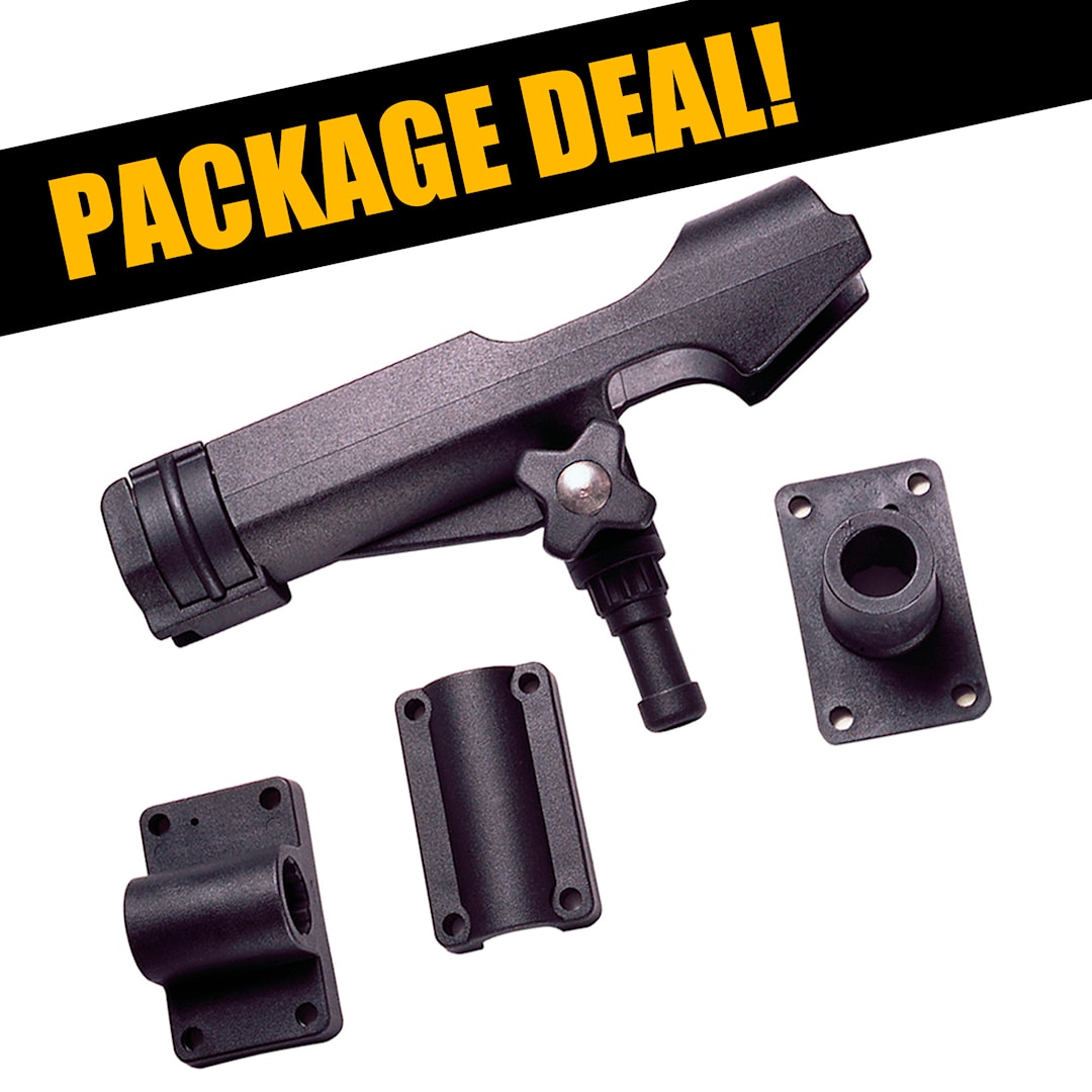 Happy Angler Combo on monipuolisilla säätömahdollisuuksilla varustettu vapateline. Vapateline sisältää tarvittavat asennuspalat ja se voidaan kiinnittää esimerkiksi veneen kaiteeseen, laitaan tai kanteen. Vapateline voidaan säätää haluttuun kulmaan sekä siinä on lukitusrengas, joka estää vavan putoamisen telineestä. • Käännettävä lukitussysteemi lukitsee telineen kiinnikkeeseen haluamaasi kulmaan • Helppo irrottaa nostamalla ja kääntämällä • Lukitusrengas pitää vavan telineessä • Monipuoliset säätömahdollisuudet • Mukaan kuuluu kaide- ja uppoasennuspala• Helppo asentaa