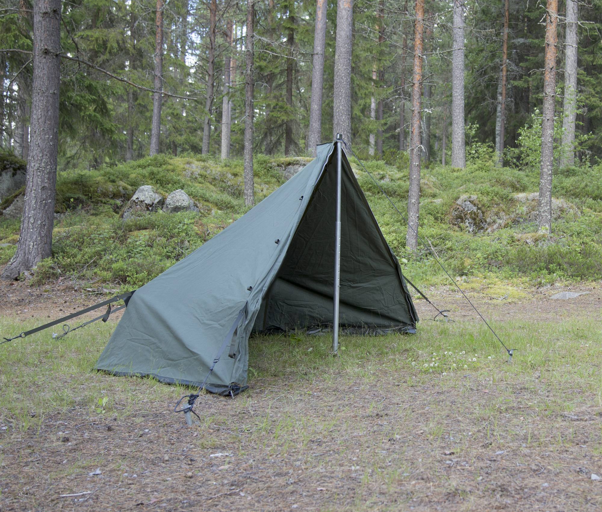 Hawu 4 -teltan puolikas joka toimii sellaisenaan avolaavuna.
