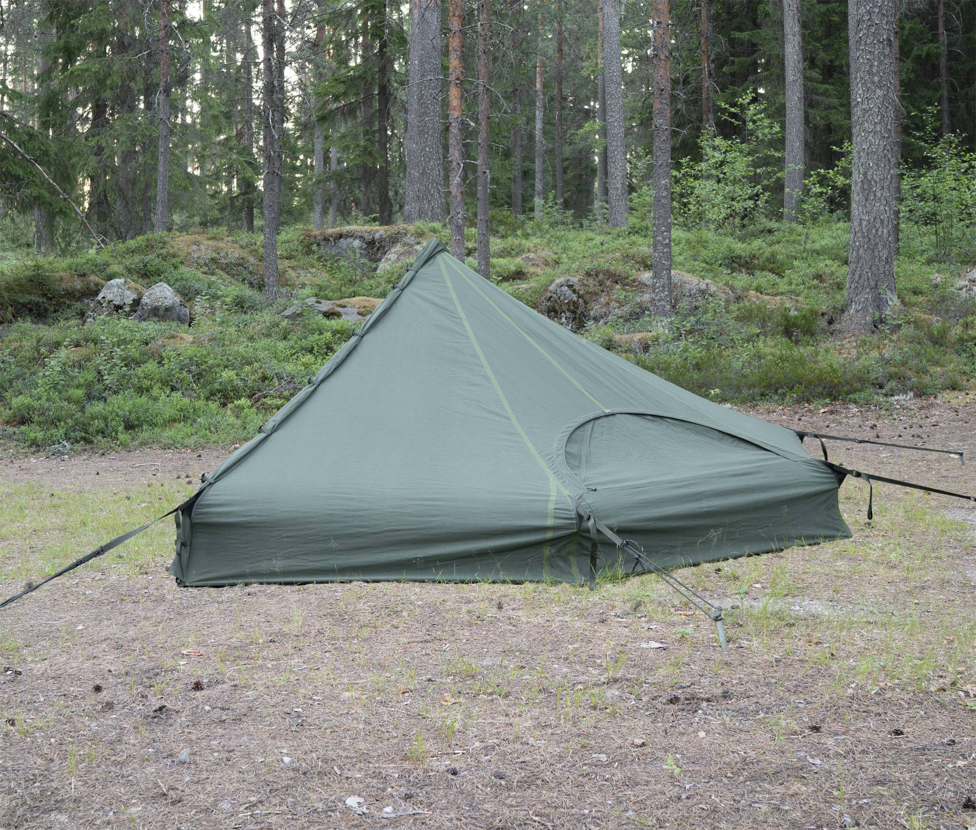 Hawu-teltan puolikas ovella ja savutorviaukolla. Paino 6,0 kg.