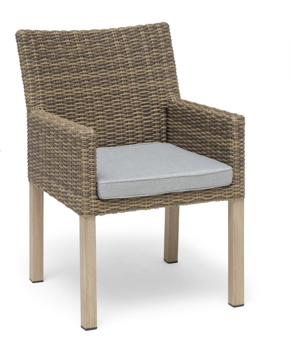 Hillerstorp Fyrsnäs tuoli sopii erilliseksi nojatuoliksi tai yhdistettäväksi Fyrsnäs ruokaöytään. Hillerstorp Fyrsnäs tuoli valmistetaan huoltovapaasta ja kestävästä polyrottingista ja alumiinista. Kuvan pehmuste kuuluu tuotteeseen. Pehmusteet eivät ole vedenkestäviä. Suositellaan käytettäväksi ainoastaan lasitetulla terassilla tai vaihtoehtoisesti,ottamaan pehmusteet sisään, kun ei käytössä.Pehmusteen päällinen on irroitettava, suositellaan hellävaraista käsinpesua miedolla pesuaineella.