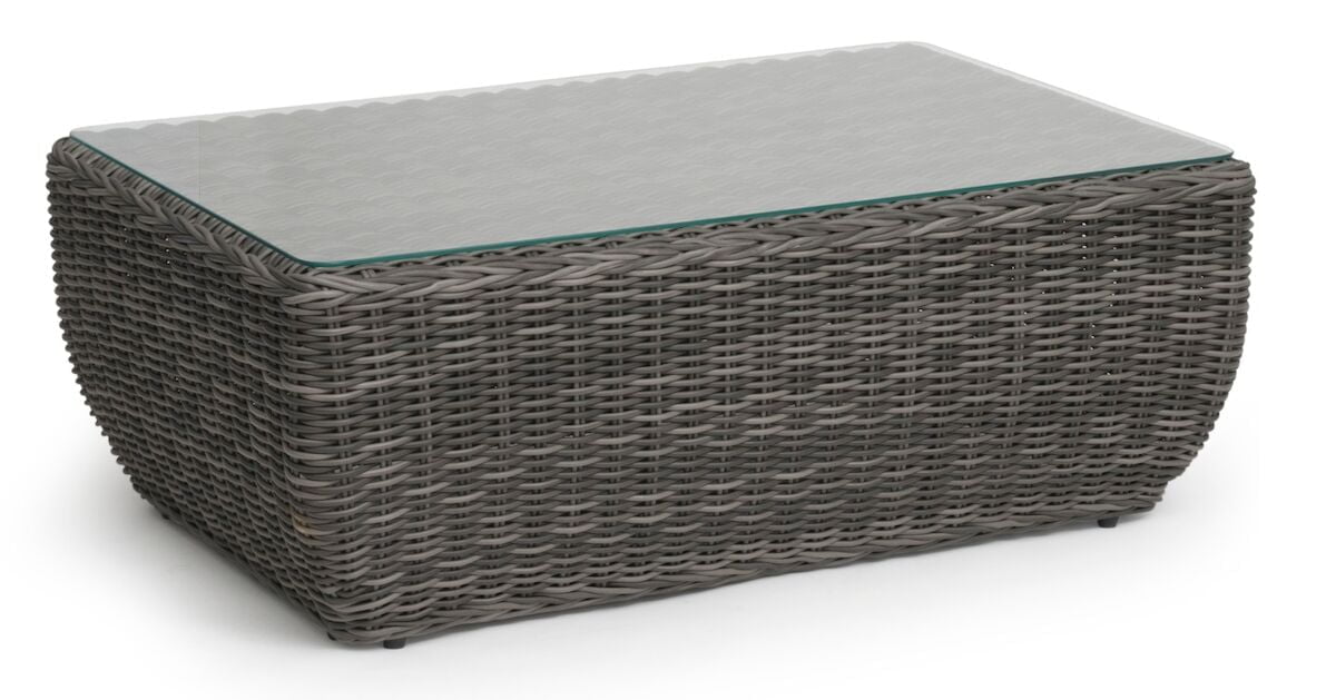 Kaunis Hillerstorp Tara sohvaöytä. Punottu, polyrottinkinen sohvaöytä pyöreillä muodoilla on tyylikäs valinta kodin ulkotiloihin. Väri harmaa. Tason päällä lasikansi. Yhdista saman sarjan 3-istuttavaan sohvaan ja nojatuoliin.