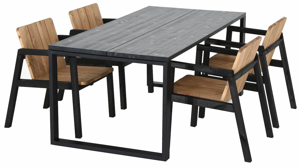 Upea 4-hengen ruokailuryhmä, joka sopii niin sisätiloihin kuin uloskin. Ryhmään kuuluu mäntyinen tyylikäs 4-hengen ruokaöytä metallijaloilla ja neljä Juho Pasilan Vekelle suunnittelemaa upeaa Kalho puutarhatuolia. Kalho puutarhatuoleilla on Design From Finland -sertifikaatti. öydän kansi on tehty kahdesta leveästä liimapuulankusta, jonka liimauksessa on käytetty vedenkestävää liimaa. Tukevat metalliset öydän jalat tuovat ilmettä ryhmään. Jalat ovat jauhelakatut ja ne voidaan asentaa kahteen eri kohtaan, joko aivan öydän päätyyn tai hieman sisemmäs.Lisätietoa materiaalista: Honka-öydässä käytettävä lankku on oksaista mäntyä, jossa sallitaan luonnollisia halkeamia, oksanreikiä, pihkasta ja puunytimestä syntyneitä uria. öydän lankkua on vanhennettu koneellisesti harjaamalla,…