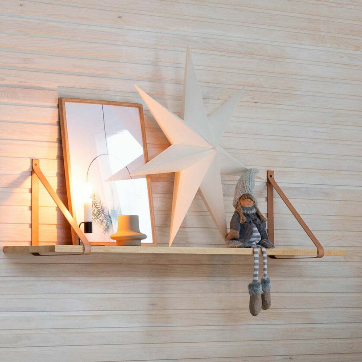 öljytty luonnonvärinen tai musta hylly. Kannakeet on valmistettu nahasta. Saatavana kahta kokoa ja väriä. Hyllylevyn materiaali on kumipuuta ja hyllyn kannattimet ovat nahkaa. Hyllyn kestää jopa 15 kg:n painon, kiinnitys ja seinämateriaali kuitenkin vaikuttavat kantavuuteen.INSTAGRAM:Tili: kodikaslato – Kuva – 9.8.2020