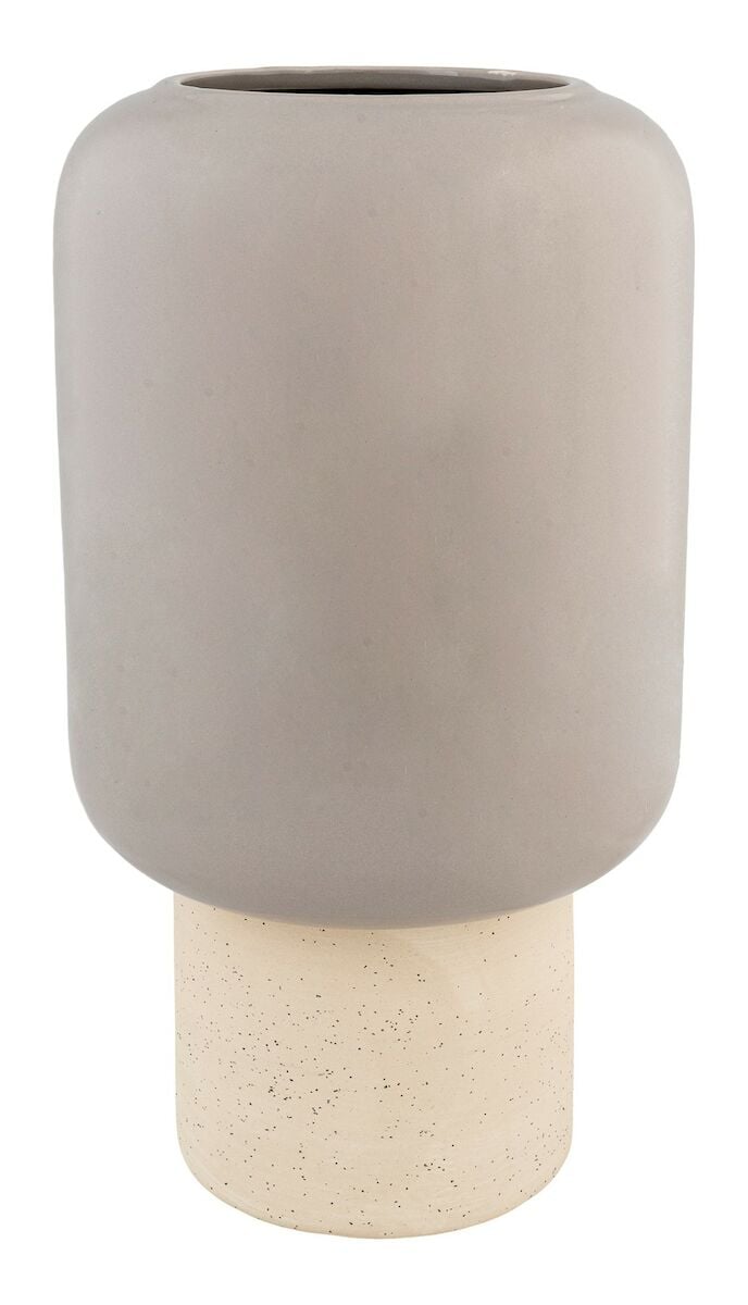 House Nordic Vibo vaasi sopii loistavasti alustaksi leikkokukille tai kasveille. Keraamisen vaasin yläosan harmaa lasite kiiltää kauniisti ja jalkaosan mattapinta tuo kontrastia kokonaisuuteen. Maljakon selkeä muoto on rauhallinen sisustuselementti. Kukat on hyvä istuttaa esim. istutusruukkuihin koska materiaalit imevät ajan kanssa vettä itseensä, eivätkä näin ollen ole vedenpitäviä.