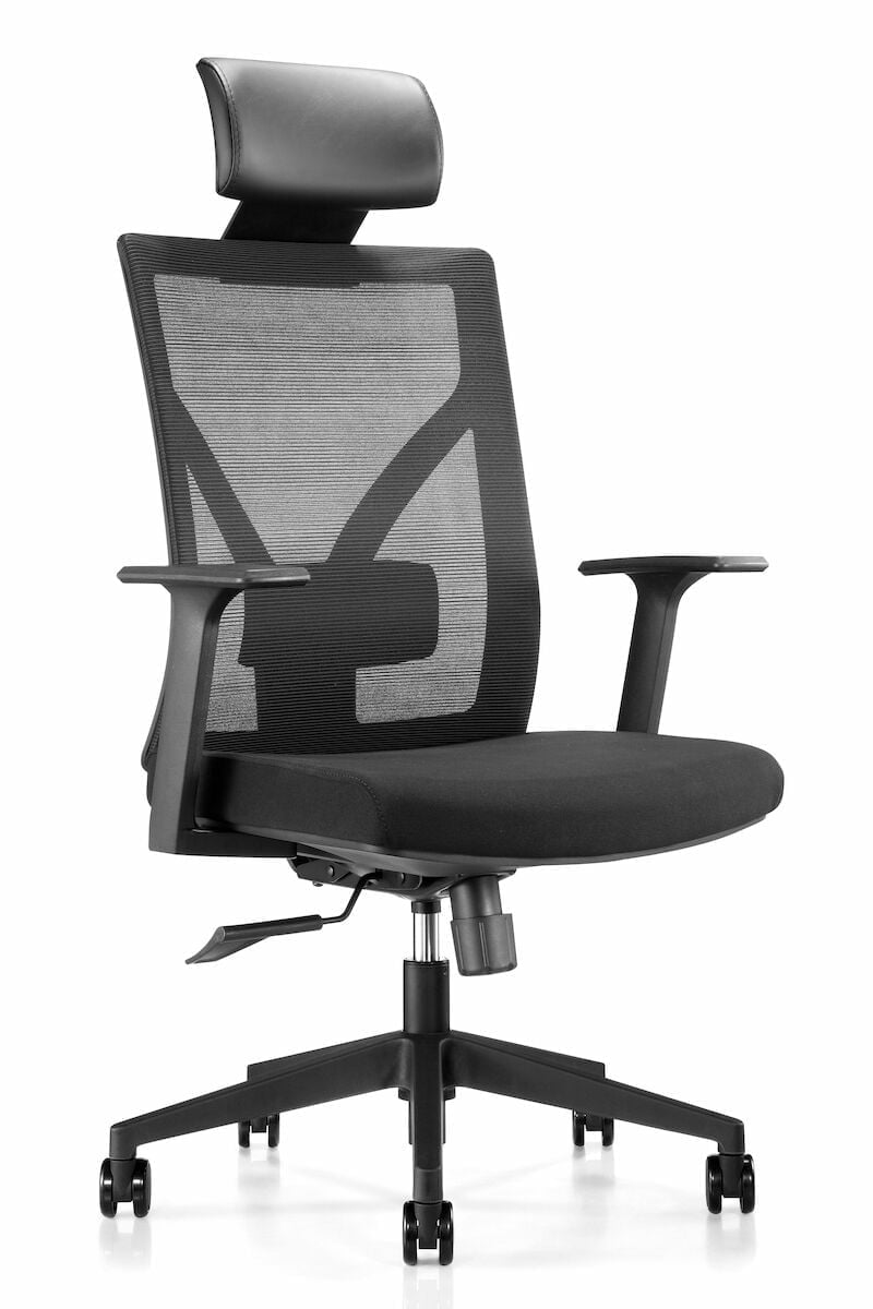 Ergonomisesti muotoiltu korkeaselkäinen Joel työtuoli. Selkänojassa oleva ristiselkätuki tukee selkääsi työpäivän aikana. Käsinojat ja miellyttävä vaahtomuovilla pehmustettu istuinosa. Laadukkaassa tuolissa on kaasujousi, silikonipyörät ja keinumekanismi. Tuolin selkänoja on hengittävää polyester-verkkokangasta. Istuinkorkeus on säädettävissä 44-54 cm välillä. Tarkempia mittatietoja näet alapuolella olevasti pienemmästä kuvasta.