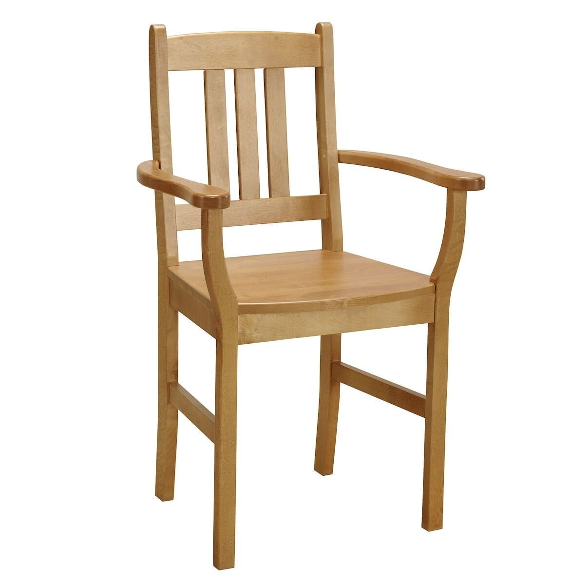 Tukeva, massiivikoivusta valmistettu Juhani seniorituoli. Tuoliin on helppo asettua istumaan leveämpien käsinojien ja sopivan istumakorkeuden ansioista. Toimitetaan käsinojat irrallaan pahvilaatikkoon pakattuna.
