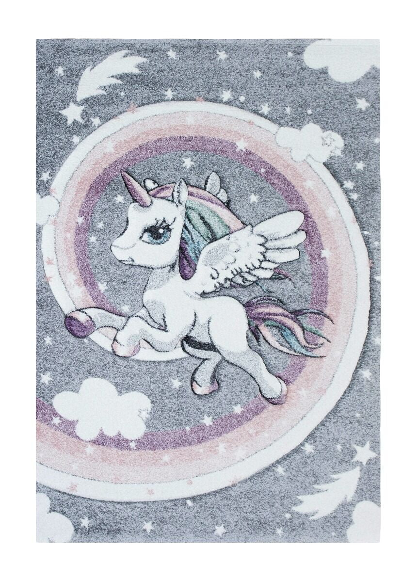 K/M Atlas yksisarvinen matto on konekudottu matto, jossa on harmaa pohjaväri. Matossa söö yksisarvinen, joka saa vieraat ihastumaan. Matto on 100% polypropeenia, joten matto on helppo puhdistaa. Ihastuttava katseenvangitsija lastenhuoneeseen.