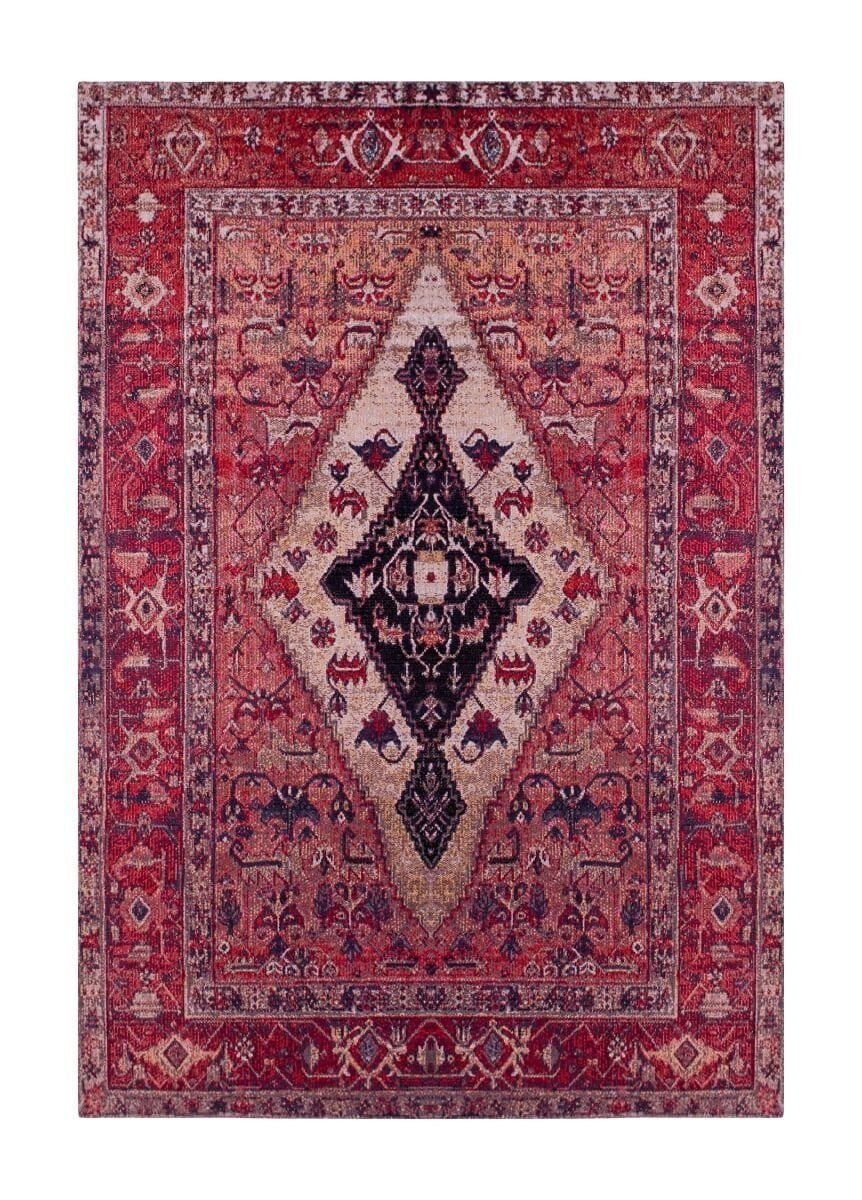 K/M Tibet Afghan matto niin sisä- kuin ulkokäyttöön. Maton materiaalina on 100% polypropeeni. Matossa on kaunis, punainen sävy ja upea vintage-henkinen kuviointi. Mattoa on saatavilla useassa eri koossa. Maton paksuus on noin 7 mm. Pesuohjeena tahrojen poisto hieman haalealla vedellä, miedolla pesuaineella ja froteepyyhkeellä tai pehmeällä harjalla. Koko maton puhdistamiseen suositellaan ammattimaista pesua. Matossa ei ole UV-suojaa, joten maton väri voi haalistua voimakkaassa auringonvalossa.