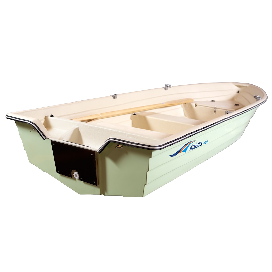 Halajatko isommille kala-apajille? Tarvitsetko luotettavaa yhteysvenettä? Nyt sinulla on siihen kaikki mahdollisuudet. Kaisla 420 kuljettaa sinut, ystäväsi ja tavaranne turvallisesti perille, minne tahdotkin mennä. Tukeva limilautarakenne tekee veneestä tukevan ja vakaan. Meno on turvallista jopa 15 hv moottorin voimin. Tarvittaessa pystyt helposti liikuttamaan venettä myös airoin. Ominaisuudet: • CE-luokitus: D • Pituus: 4,20 m • Leveys: 1,43 m • Perän leveys: 1,35 cm • Hlö/max kuorma: 4hlö/ 320kg • Moottorisuositus max: 11kW/ 15hv/ 60kg • Rikin pituus: Lyhyt • Airosuositus: 270 cm Paketti sisältää: • Kaisla 420 moottorivene • 270 cm airot nivelhankaimineen• Kahdet venehankaimet • Kondenssitulpat • Pohjatulppa • Keulasilmukka • 2 perälenkkiä • Hiekkahartsiköli • 2 kpl lukittavaa säilytyslaatikkoa • PVC -reunalistaHUOM! Tuote toimitetaan suoraan tilauksella annettuun osoitteeseen Hanko-Rovaniemi välillä. Tuotetta ei voi tilata Ahvenanmaalle, eikä Rovaniemen pohjoispuolelle. Toimitus vaatii raskaankaluston pääsyn purkupaikalle sekä vaatii tilaajalta tavaran vastaanoton ja osallistumisen purkuun. Kuljetusyhtiö on yhteydessä vastaanottajaan ennen toimitusta. Perutuista verkkokauppatilauksista ei palauteta rahdin osuutta.