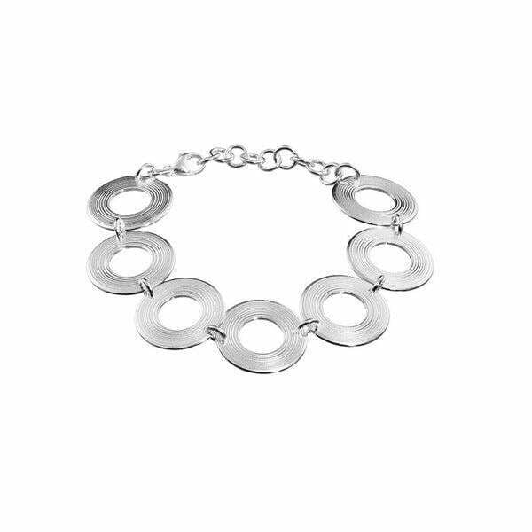 Kalevala Koru Kosmos rannekoruTaivaankappaleiden on uskottu vaikuttavan kohtaloon, ja niiden asennoista on luettu tulevaa. Kosmos-korujen ympyrät ja spiraalit, täydellisyyden ja äärettömyyden ikivanhat symbolit, kuvastavat meitä ympäröivää päättymätöntä maailmankaikkeutta, jossa taivaankappaleet vaeltavat, kukin omalla radallaan, kukin omaan tahtiinsa. Korujen kirkas pronssi loistaa kuin aurinko lämpimän kullanhehkuisena.Säädettävä pituus: 17-21 cmPaino: 22 gMateriaali: hopeaDesign: Antonio MazzamauroTuotekoodi: 2568771210