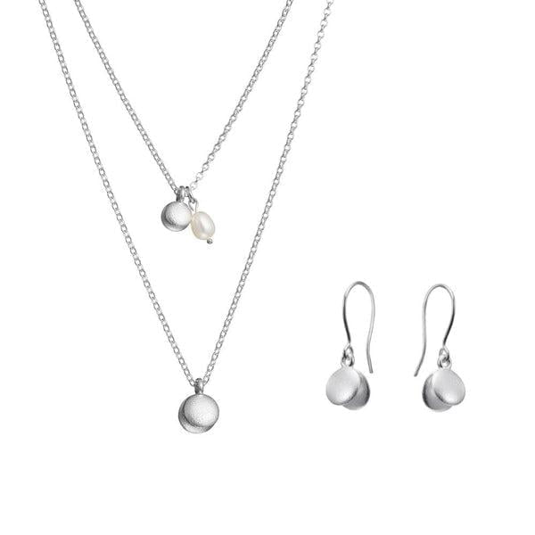 Kalevala Onnenhelmi lahjasetti, jossa hopeinen riipus valkoisella helmellä sekä korvakorut Suositun Onnenhelmi-sarjan lahjasetti on loistava idea lahjaksi ja se toimitetaan kauniissa lahjarasiassa. Settiin kuuluu kaksiosainen Onnenhelmi-kaulakoru sekä pienet Onnenhelmi-korvakorut. Lina Simonsin suunnittelemissa Onnenhelmi-koruissa keinahtelevat pienet hopeasta valetut mattapintaiset riipukset. Riipusten muoto on saanut innoituksensa meren rannalle huuhtomista simpukankuorista. Onnenhelmi-kaulakorussa on hopeinen kaksoisketju ja pidemmässä ketjussa säädettävä pituus. Voit erottaa riipuksen myös kahdeksi erilliseksi ketjuksi erillisten jousirengaslukkojen ansiosta. Toisessa ketjussa on valkoinen makeanvedenhelmi. Materiaali: HopeaHelmi: Valkoinen makeanveden helmiKetjun pituus: Lyhyt ketju 42 cm, pitkä ketju 45/50 cm (säädettävä)Design: Lina SimonsTuotenumero: 2969950 Katso kaikki Kalevala-korut täältä