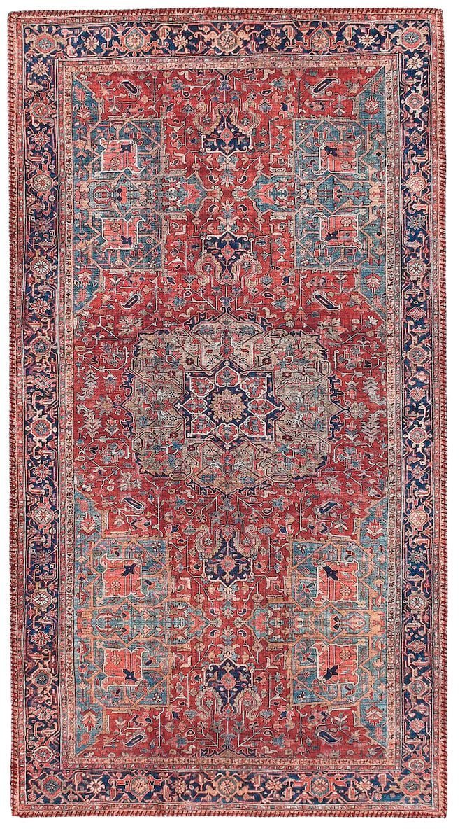 Kashmar-matossa on miellyttävän lämmin värimaailma, klassinen itämainen kuviointi ja viimeistelynä reunoja kiertää kaunis käsintehty tikkaus. Matossa on puuvillapohja. Värinä punainen/beige. Paino 1.2 kg/m2, eli 160×230 cm maton paino 4,4 kg.