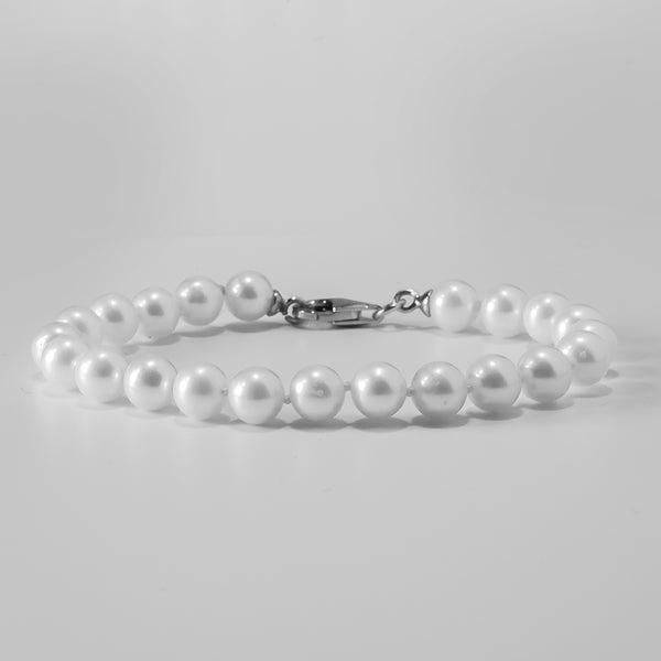 Helmirannekoru aidoilla makeanveden viljellyillä helmillä Kaunis helmirannekoru makeanveden viljellyillä helmillä. Helmen koko: 7,5mm – 8mmHelmen muoto: PyöreäHelmen väri ja kiilto: Valkoinen helmiäinen, kiiltäväHelmen tyyppi: Viljelty makeanveden helmiPituus: 19,5cmLukon materiaali: Hopea Huom! Kuvasta poiketen lukko on pyöreä hopeinen (ei papukaijalukko).