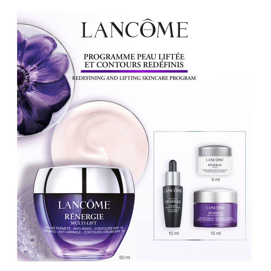Lancômen Rénergie Multi-Lift Skincare Set on upea setti sinulle, joka toivot kiinteyttävää, kosteuttavaa ja ryppyjä vähentävää ihonhoitoa.