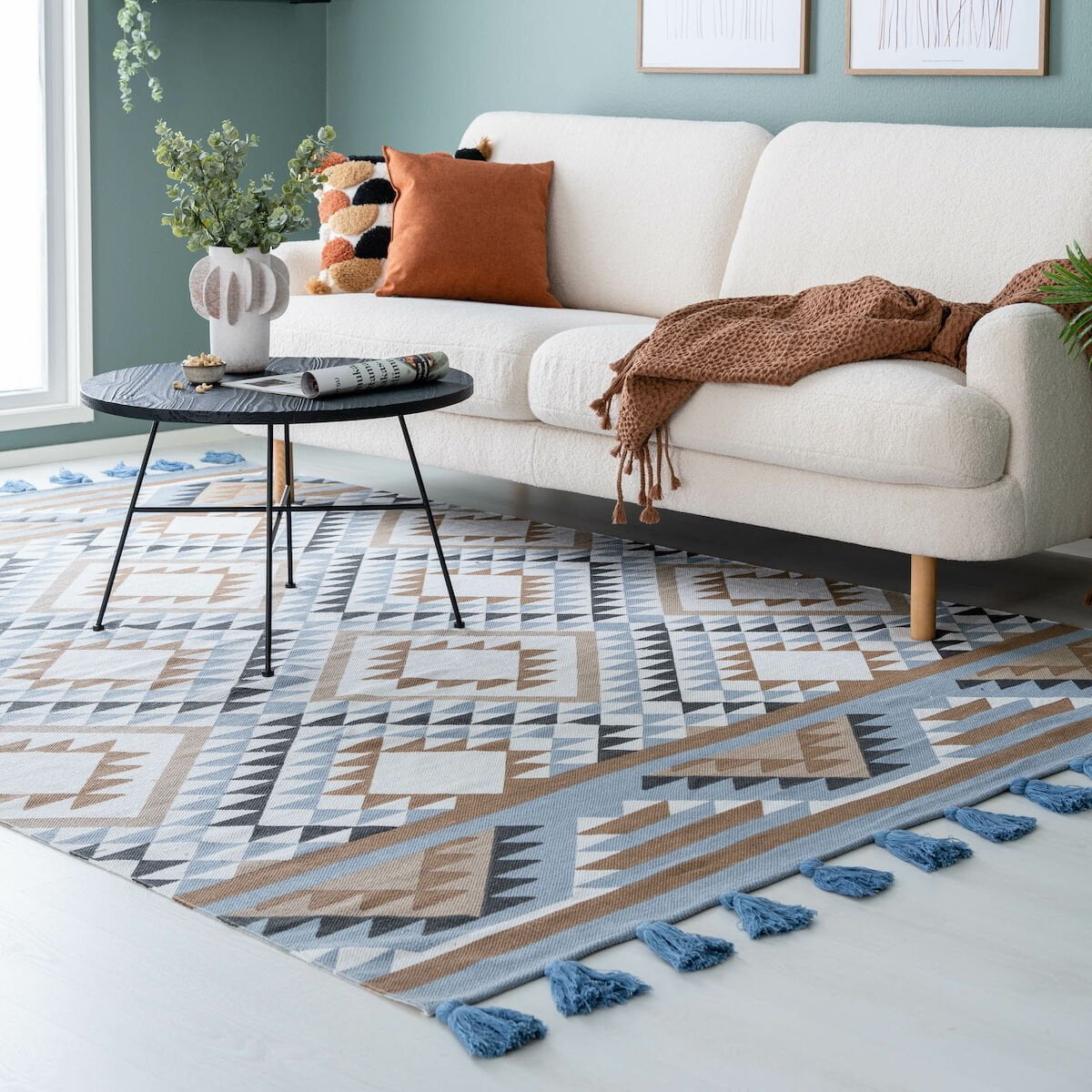Kaunis printtikuvioinen Lenni puuvillamatto. Maton päädyissä on ihastuttavat tupsut. Matto on kevyt käsitellä. Materiaalina 100% puuvilla. Suosittelemme maton alle käytettäväksi liukuestettä.