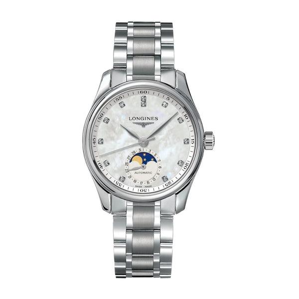 Teräksenharmaa Longines Master Collection L24094876 naisten rannekello, jossa on helmiäiskellotaulu ja timantit indekseinä. Longines Master Collection on yhdistelmä klassista eleganssia ja erinomaista laatua niille, jotka arvostavat poikkeuksellisia kelloja. Tässä teräksenharmaassa naisten Longines-rannekellossa on helmiäiskellotaulu ja 12 Top Wesselton VS-SI-timanttia indekseinä. Kellossa on lisäksi Moonphase-näyttö, joka osoittaa kuun vaiheet visuaalisella tavalla, sekä sitä kiertävä päivyri osoittimella. Kokonaisuutta täydentää teräsranneke, jossa on sekä harjattua että kiiltävää pintaa. Rannekkeessa on kolmitaitelukko painikkeilla. Longines Masten Collection -kellossa on automaattikoneista 72 tunnin käyntivaralla ja kellotaulua suojaa naarmuuntumaton safiirilasi heijastuksenestopinnoitteella. Myös kellon tausta on läpinäkyvä ja suojattu safiirilasilla. Mallinumero: L24094876Kuoren materiaali: ruostumaton teräsKuoren väri: teräksenharmaaKuoren halkaisija: 34 mmKellon paksuus: 11,1 mmRannekkeen materiaali: ruostumaton teräsRannekkeen väri: teräksenharmaaRannekkeen leveys: 18 mmKellon paino: 105,1 gSafiirilasi, naarmuuntumatonKellotaulu: helmiäinenTimantit: 12 Top Wesselton VS-SI-timanttia (0,055 ct)Päivämääränäyttö osoittimellaKuun vaiheet -näyttöVesitiiviys: 30 metriä (3 bar)Koneisto: automaattiKäyntivara: 72 tuntia Katso kaikki Longines-kellot täältä