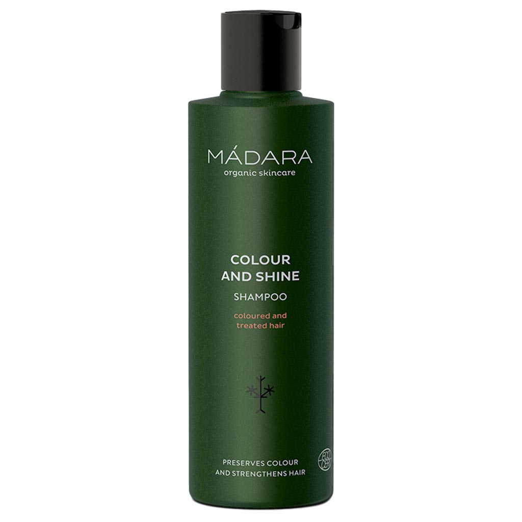Colour & Shine shampoo sopii värjätyille hiuksille ja se suojaa hiusten väriä .Madara Colour & Shine shampoo värjätyille ja käsitellyille hiuksille on väriä suojaava, pellavansiementä, hevoskastanjaa ja piharatamoa sisältävä shampoo. Pesee hellävaraisesti käsitellyt ja värjätyt hiukset. Jäntevöittää hiusta ja lisää kiiltoa. Hiuksista tulee pehmeämmät. . Pitkiä hiuksia kannattaa pitää kesällä mielummin kiinni kuin auki. Näin pienennät pinta-alaa, johon auringon säteet osuvat. Kiepauta latvat nutturan sisään, jolloin ne kaikkein kuluneimpana osana säästyvät UV-säteiltä. . Aktiiviraaka-aineet: . Kvitten-hedelmä: kvittenuutteella on ihoa pehmentävä ja kosteuttava vaikutus. Se sisältää orgaanisia happoja, joilla on vähäisiä ihoa vaalentavia ja kirkastavia ominaisuuksia. Qvittenin hapot pehmentävät hiuskuituja, tehden hiukset pehmeämmiksi ja kiiltävämmiksi. . Nokkonen: Sisältää runsaasti A- ja E-vitamiineja, jotka ovat voimakkaita antioksidantteja. Sisältää arvokkaita mineraaleja, jotka ravitsevat ja suojaavat ihoa. . Pakkauskoko: 250ml, muovipullo .