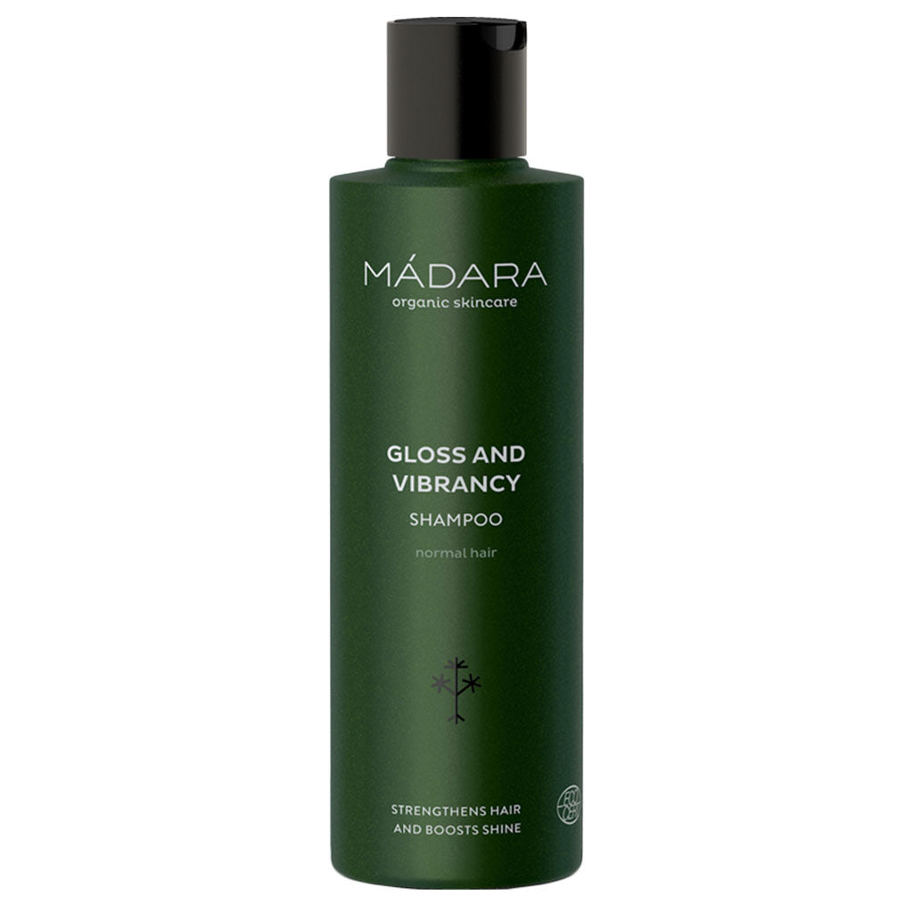 Gloss & Vibrance shampoo pesee hellävaraisesti, suojaa sekä lisää tuuheutta .Madara Gloss & Vibrance shampoo normaaleille hiuksille. Hiuksista tulee vahvemmat, silkkisemmät ja luonnollisen kiiltävät Hiero märkiin hiuksiin. Vaahdota ja huuhtele. Jatka hoitoa Gloss and Vibrancy Conditioner hoitoaineella parhaan tuloksen saavuttamiseksi.Gloss & Vibrance shampoo suojaa hiuksia sekä lisää tuuheutta. . Pitkiä hiuksia kannattaa pitää kesällä mielummin kiinni kuin auki. Näin pienennät pinta-alaa, johon auringon säteet osuvat. Kiepauta latvat nutturan sisään, jolloin ne kaikkein kuluneimpana osana säästyvät UV-säteiltä. . Aktiiviraaka-aineet: . Koivu-uute: tunnetaan ihoa parantavista ja puhdistavista ominaisuuksistaan, mutta se toimii myös supistajana. Omaa myös tulehduksenvastaisia ja ihoa rauhoittavia ominaisuuksia. Taistelee hiustenlähtöä ja hilsettä vastaan. . Karpalouute: karpalouute stimuloi ihon luontaista uusiutumisprosessia, kiitos sen runsaan c-vitamiinipitoisuuden. Uute sisältää orgaanisia happoja jotka aktivoivat ihon kykyä vastaanottaa välttämättömiä ravinteita. . Ruusuvesi: ruusuvedellä on pehmentäviä, supistavia ja puhdistavia ominaisuuksia. Se stimuloi kapillaarisuonien pintaverenkiertoa, auttaa minimoimaan arpia, pieniä haavaumia, auringonpolttamia ja juonteita. . Pakkauskoko: 200ml, muovipullo .