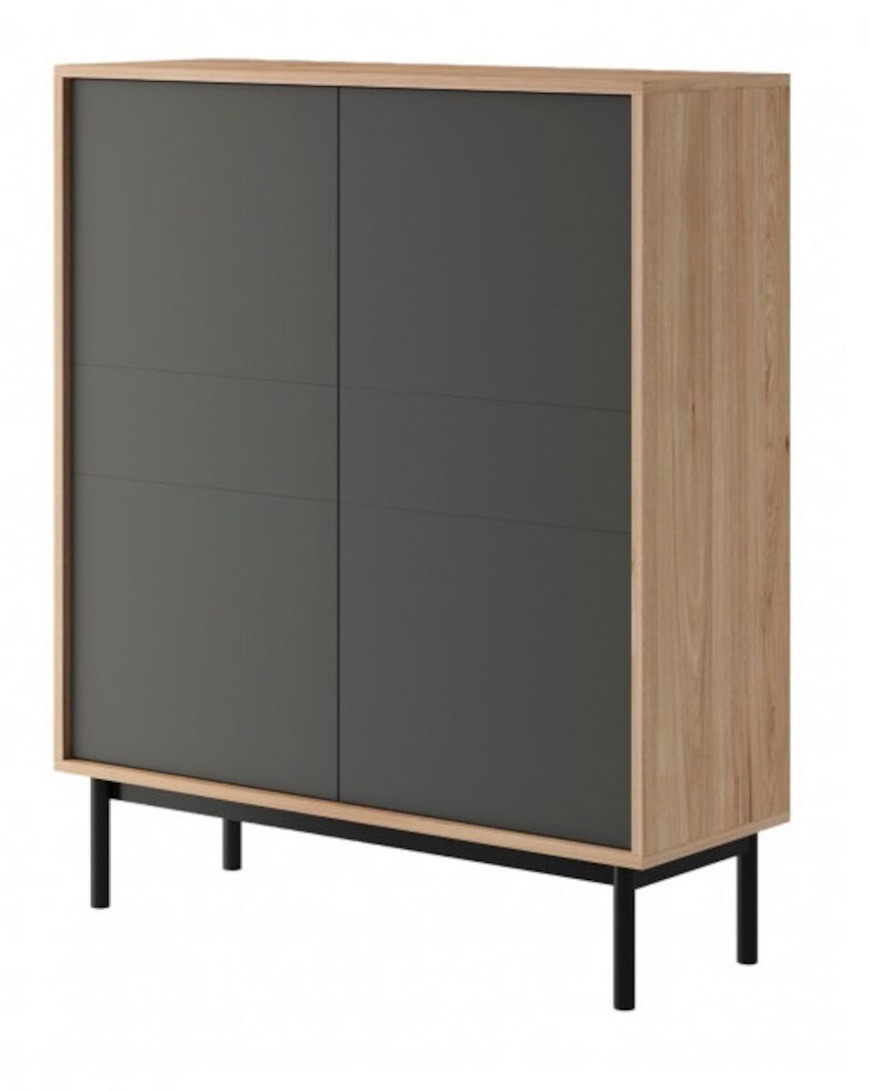 Moderni ja kaunis korkeajalkainen Milo kaappi reilulla säilytystilalla ja tyylikkäällä tammen ja harmaan väriyhdistelmällä. Senkissä on tammen värinen 18 mm laminoitu kalustelevyrunko harmailla etusarjoilla. Kauniit mustaksi maalatut puujalat antavat kepeän ilmeen ja helpottavat siivousta. Kaappi sisältää kaksi ovellista kaappia leveillä välihyllyillä. Ovissa ja laatikossa on push-to-open-mekanismi. Kaapin pääliosan kantavuus 4 kg, sisällä olevat hyllyt 3 kg/hylly ja alahylly 6 kg.