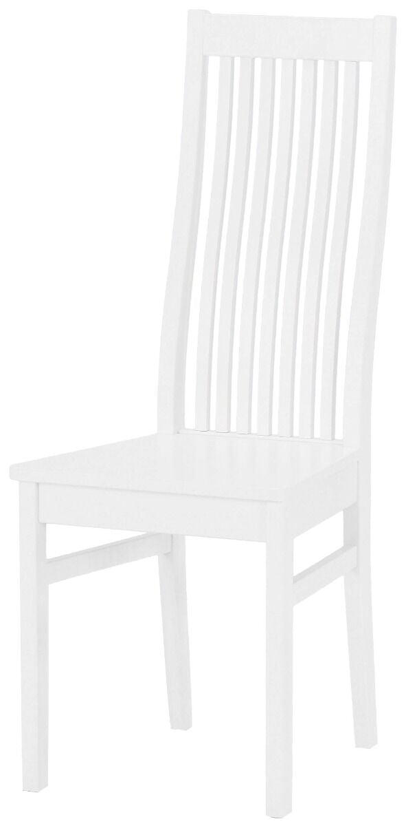 Tyylikäs ja tukeva Minea tuoli on valmistettu kestävästä puusta, valkoisessa tuolissa istuinkansi on mdf-levyä. Tuolin leveys takaosasta 31 cm. Tämän klassisen tuolin selkänoja on korkea, joten istumamukavuus on todella miellyttävä ja voit istua rennosti. Toimitus pahvilaatikkoon pakattuna.
