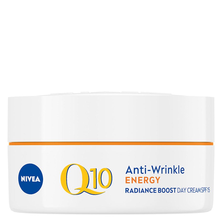 Nivean Q10 Energy Healthy Glow Day Cream on päivävoide aurinkosuojakertoimella 15. Kevyt ja virkistävä koostumus imeytyy nopeasti ihoon antaen terveen hehkun. Se sisältää puhdasta Q10:tä, C-vitamiinia ja guaranauutetta.