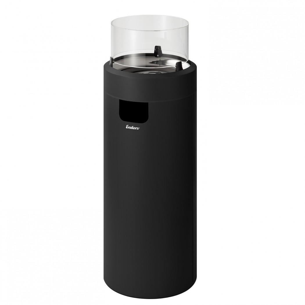 Musta Nova-kaasutakka suurikokoisena mallina. Yläosan LED-valo korostaa liekkejä kauniisti.